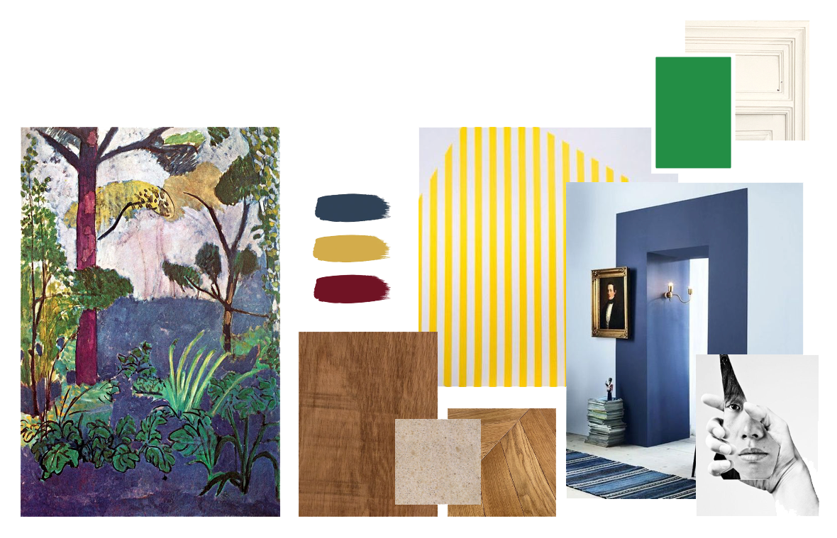 Le projet mêle une palette audacieuse, des matières naturelles comme le bois et la pierre, et des références graphiques aux célèbres rayures pour créer un espace de travail vibrant et contemporain.